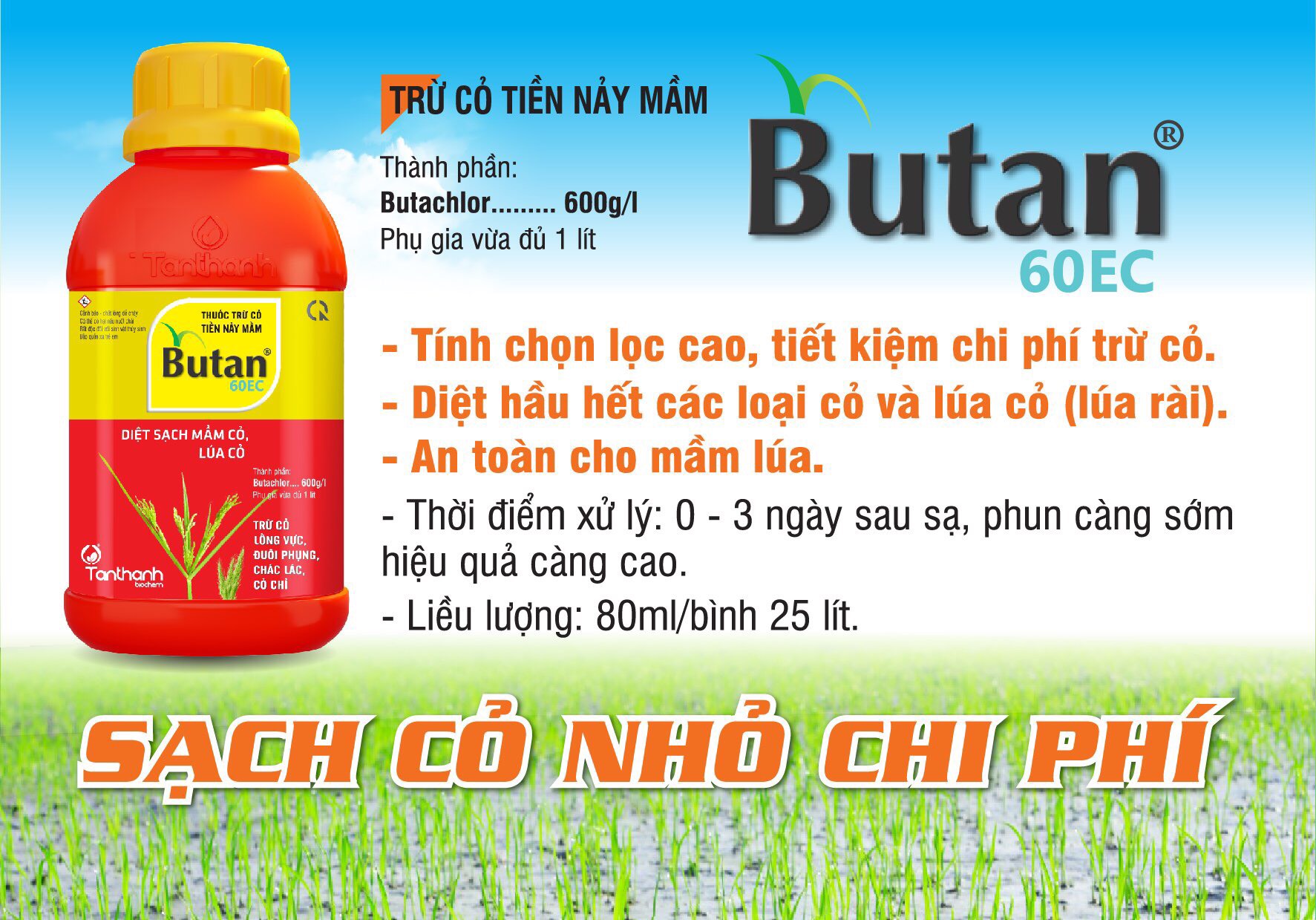 – Để diệt trừ lúa cỏ (lúa rài) trong đất, phun Butan 60EC sớm từ 0 – 2 ngày sau sạ.