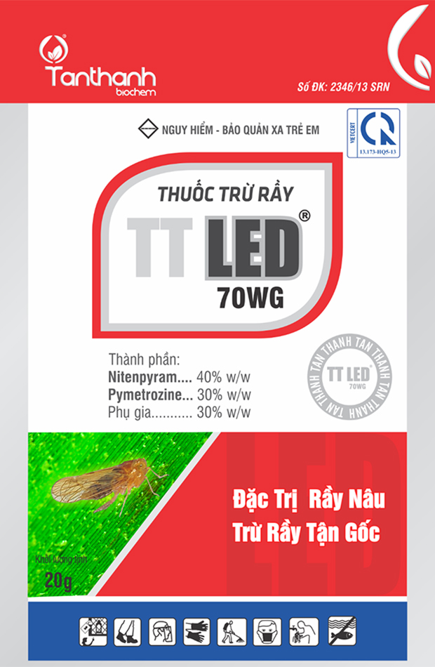 Anh Nguyễn Phát Đạt ở Nông trường Cờ Đỏ - ấp 6, kênh 7, huyện Cờ Đỏ, TP. Cần Thơ chia sẻ: “Tôi có 10 ha đất lúa và đã sử dụng TT Led 70WG đến nay đã 6 vụ. Thuốc trừ rầy rất hiệu quả, diệt được rầy cám và cả rầy chửa, rầy cánh. Sau phun khoảng 1 giờ là thấy rầy đã chết đóng cục, tôi rất an tâm. Phun rầy sau 2 – 3 ngày, tôi mới rút nước thấy gốc lúa rất “sạch”, cho hiệu quả đạt từ 90 – 95%”.