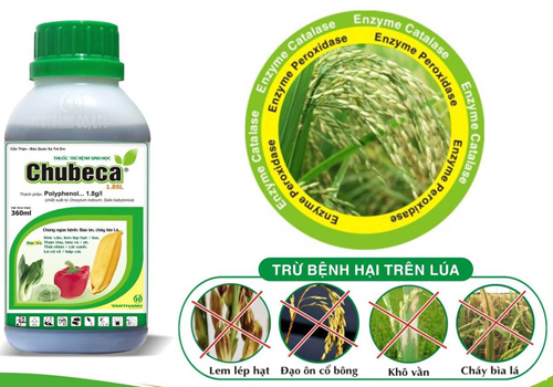 - Phase rice began flowering stage of rice plants are susceptible to disease , so prevention is better than cure , Tan Thanh Company may use Chubeca 1.8SL solution " Immunization disease " . Chubeca 1.8SL spray for rice , by triggering mechanisms resistance , impact as a preventive vaccine , 36 hours after injection Chubeca 1.8SL rice will produce two enzymes catalase and peroxidase , two enzymes affect her established lesions fungal and bacterial attack , in time to prevent the spread of germs and the effect lasts up to 14 days after injection .