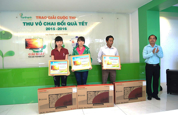 The program took place 2 times on Mid-Autumn 2015 and Lunar New Year 2016 with chosen numbers of empty bottles in 2015 & 2016 was 993.3000 units, nearly 1000.000 units. Tan Thanh was so proud of this figure. The company was the pioneer in collecting and changing empty bottles for gifts in order to keep clean environment and offered farmers a better Tet holiday.