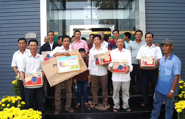 Today, Feb. 4th, 2016, at the Tan Thanh headquarter, 3165 Thanh An Town, Vinh Thanh District, Can Tho City, celebrated the “ Collect empty bottle – Get Tet gift awarding ceremony in 2015 & 2016” to the farmers who wanted to change numbers of empty bottles for good prizes.