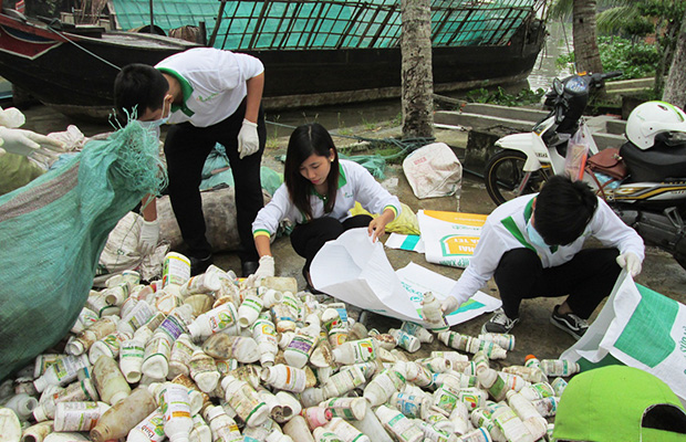“Such large numbers of bottles will influence badly on environment when they are not processed or recycled, from now on, I will do and remind people always collect them for a clean living world”, said Mr. Chien, a farmer in Soc Trang. His saying probably showed that the farmer’s attitudes had positive changes on keeping the environment.
