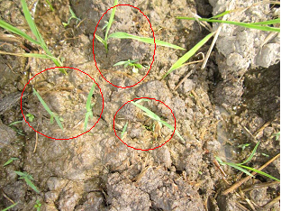 Vào ngày 12/04/2013, Tôi cùng anh Tấn có đi thăm ruộng (diện tích 6.000 m¬2), lúc đó lúa anh Tấn được 9 ngày sau sạ, thấy cỏ xuất hiện với số lượng khoảng 20 cây/m2. Trong đó cỏ lồng vực (cỏ gạo) và cỏ đuôi phụng là chủ yếu, còn nhóm cỏ chác lác là rất ít.