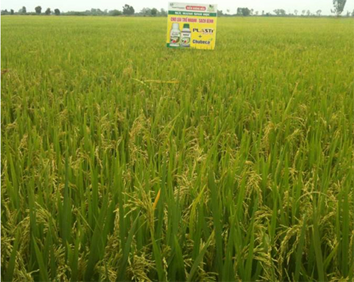 Lúc cây lúa không có khả năng tự tái tạo cũng là lúc cây cần phải được bảo vệ tốt nhất. Theo anh Nguyễn Văn Tốt, nông dân ấp Gò Dồ - xã Bình Hòa Tây - tỉnh Long An, sau nhiều năm làm lúa đã rút ra kinh nghiệm: “Lúc lúa trổ chín thường bị nhiều sâu bệnh tấn công, nhưng quan trọng và khó trừ hơn vẫn là các loại bệnh hại, cách tốt nhất vẫn là ngừa bệnh kèm với việc xử lý giúp lúa vào gạo nhanh, lúa sẽ vượt qua được những điều kiện bất lợi này”. Lúc lúa trổ lẹt xẹt anh phun 240ml Plastimula 1SL + 360ml Chubeca 1.8SL pha phi 200 lít nước phun 5 công để giúp lúa trổ thoát nhanh, quản lý bệnh lem lép hạt, đạo ôn cổ bông, vàng lá… Trổ đều phun lặp lại lần 2 với liều lượng 240ml Plastimula 1SL + 360ml Chubeca 1.8SL pha phi 200 lít nước phun 5 công để giúp lúa vào gạo nhanh, quản lý bệnh lem lép hạt, đạo ôn cổ bông, vàng lá, nếu áp lực bệnh đạo ôn cổ bông cao anh cộng thêm Travil 75WP phun 5 gói 100g cho 1 ha.