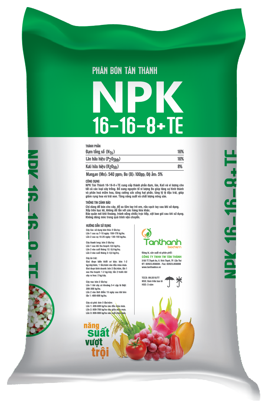 PHÂN BÓN NPK BỔ SUNG VI LƯỢNG NPK TÂN THÀNH 16-16-8 + TE