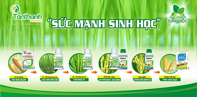 Helps create and increase grains rapidly, lengthen the leaf lifespan, enhance productivities, reduce pests, make the plants flower simultaneously and 3-5 days sooner than usual. |