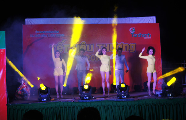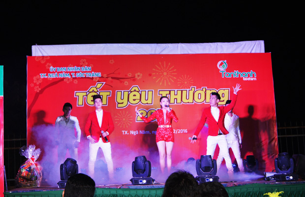 “Tet of Love 2016” had a final destination at Nga Nam Hamlet, Soc Trang Province. The program was more meaningful when it was taken place on Feb 3rd – Vietnam Communist Party Establishing Anniversary. There were lots of local authorities came the program. Hundreds of people in the district, both elderly and children attended the program at early time. Some famous artists and singers: Lam Hung, Lam Ngoc Hoa, Phuong Loan, etc. served them many love songs, bolero as well as remix hits.