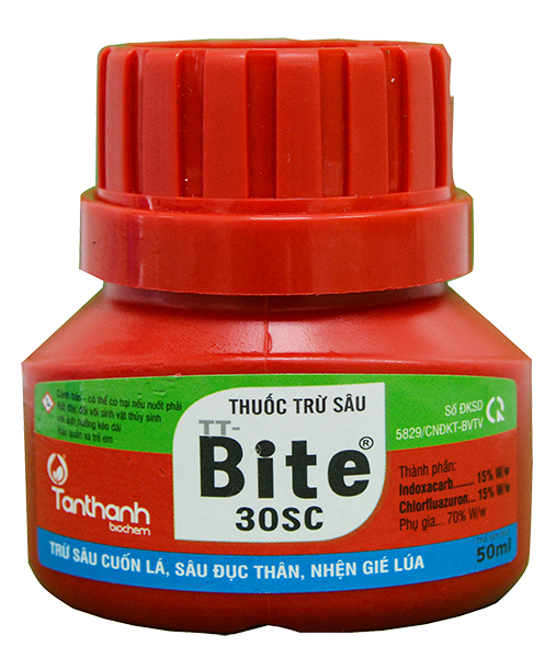 TT Bite 30SC có tác dụng tiếp xúc, vị độc phòng trừ hữu hiệu sâu cuốn lá hại lúa.