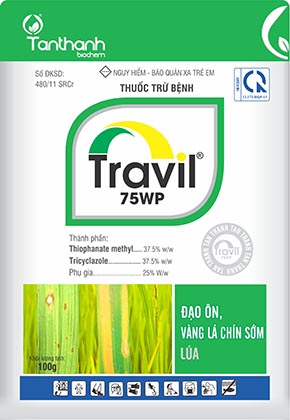 Travil 75WP has strong exposure and internal impacts. It can prevent leaf blast, rotten neck, early ripening diseases.