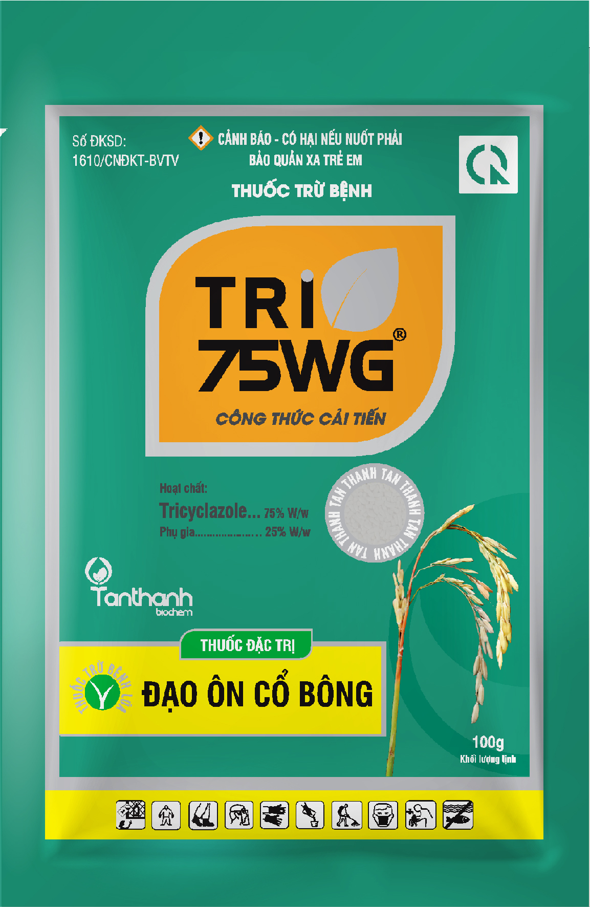 Tri 75 WDG là thuốc trừ bệnh có tính lưu dẫn mạnh, có tác dụng phòng và trị hữu hiệu đối với bệnh đạo ôn hại lúa hay còn gọi là bệnh cháy lá (đạo ôn lá), khô cổ bông (đạo ôn cổ bông, thối cổ gié), khô vằn trên lúa