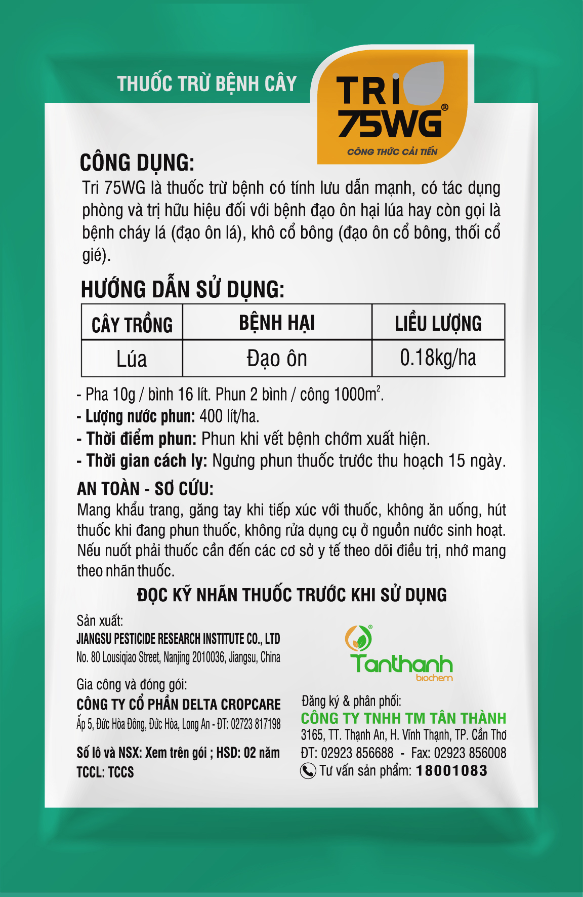 TRI 75WG - 100g - mặt trước TRI 75WG - 100g - mặt sau