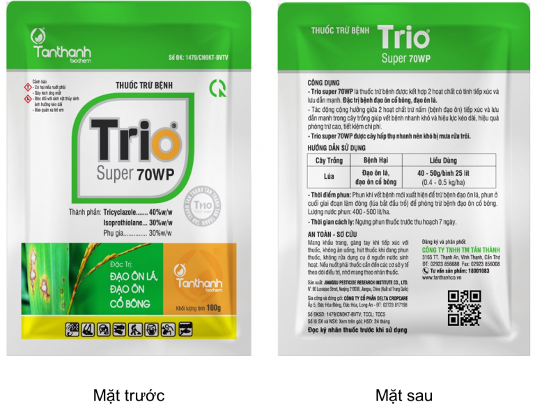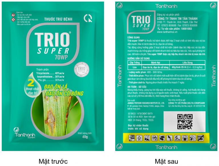 – Trio super 70WP được cây hấp thụ nhanh nên khó bị mưa rửa trôi.