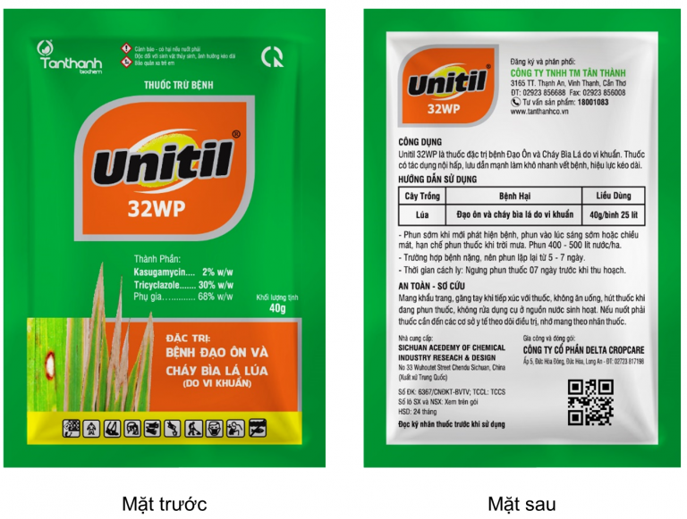 – Thuốc đặc trị bệnh đạo ôn và cháy bìa lá do vi khuẩn.