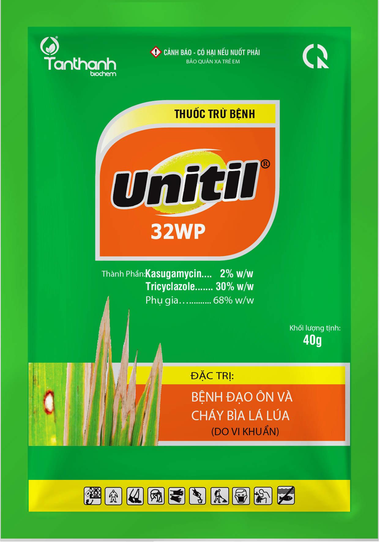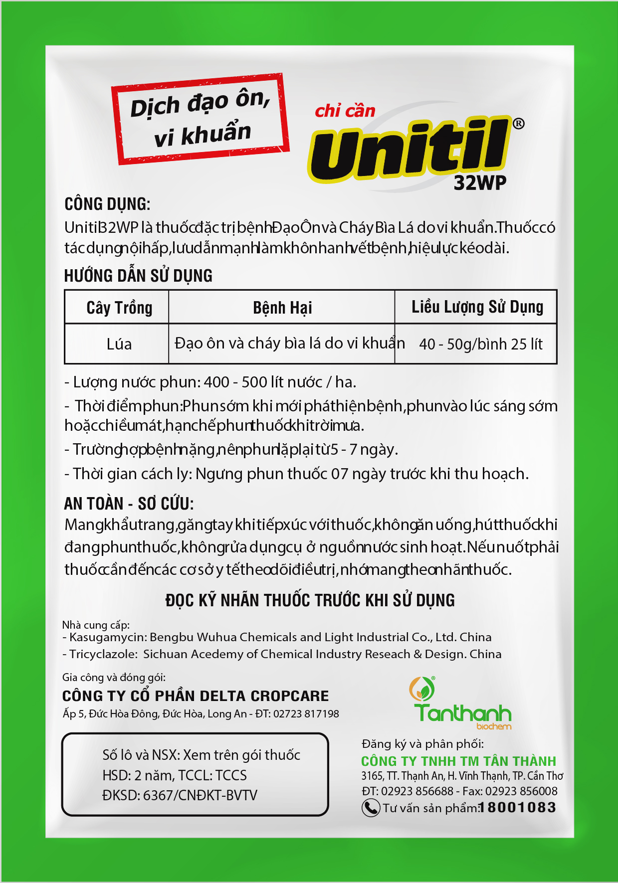 Unitil 32 WP là thuốc vừa đặc trị bệnh đạo ôn vừa đặc trị bệnh vi khuẩn (cháy bìa lá). Thuốc có tác dụng nội hấp, lưu dẫn mạnh làm khô nhanh vết bệnh, hiệu lực kéo dài.